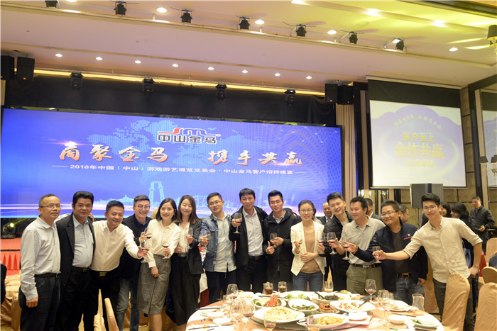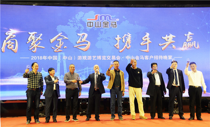 11月28日,時值第十一屆中國(中山)國際游戲游藝博覽交易會行業(yè)盛會召開之際,中山金馬公司在喜來登酒店隆重設(shè)宴,精心籌劃了一場“商聚金馬,攜手共贏”的主題晚宴,為遠(yuǎn)道而來的新老客商朋友、合作伙伴接風(fēng)洗塵,與行業(yè)同仁歡聚一堂,共襄盛會!