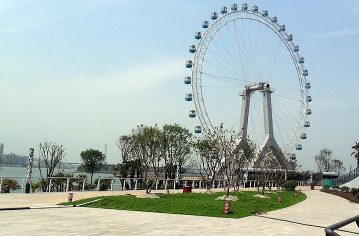 GLC-62A觀覽車高度約62米,支架采用倒Y雙立柱形式,轉(zhuǎn)盤采用輻條式,座艙懸掛在轉(zhuǎn)盤的外側(cè)支撐架上。乘客從站臺乘座艙徐徐升起,升到高空,環(huán)繞一圈后又回到站臺,獨(dú)特的運(yùn)動方式,提供了獨(dú)特的空間體驗(yàn),讓人充分體會在大地和高空中循環(huán)往復(fù)的同時,遂寧市的老城區(qū)的歷史感,新城區(qū)的現(xiàn)代質(zhì)感和涪江的波光粼粼的景色,充分體驗(yàn)天水共一色的美景。