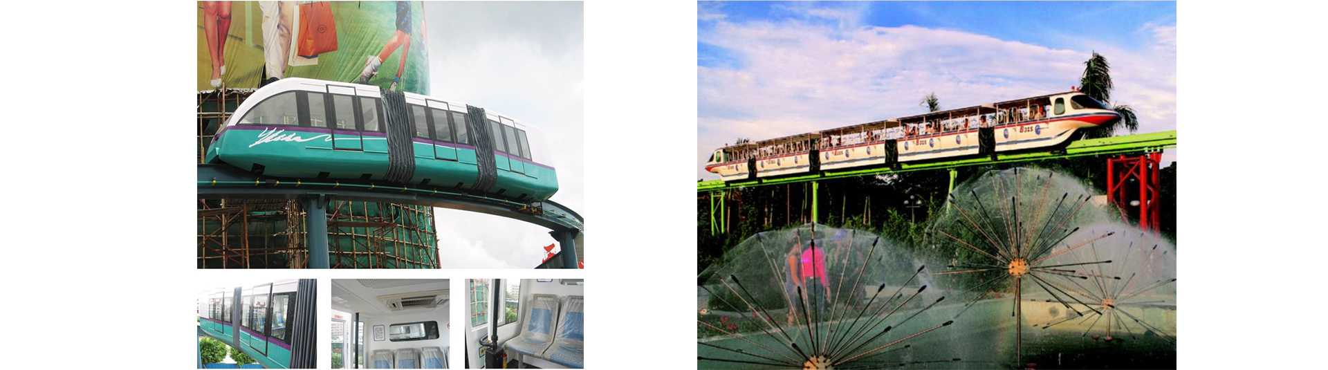 是沿架空單軌電力驅(qū)動(dòng)運(yùn)行的新型游覽車(chē)。它載客量大,運(yùn)行平穩(wěn),速度適中,老少咸宜。列車(chē)配以造型新穎的流線(xiàn)型玻璃鋼外殼及精致的裝飾,乘坐舒適,悅目可人,豪華大方,是觀覽大自然的理想游樂(lè)設(shè)備。