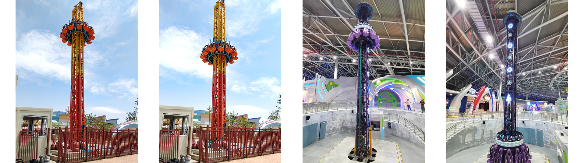 QWT-12D型旋轉(zhuǎn)青蛙跳游藝機(jī)是我公司最新開(kāi)發(fā)的一種以旋轉(zhuǎn)跳躍為主題的游樂(lè)設(shè)備。座艙沿著豎直的塔架軌道作升降、旋轉(zhuǎn)和連貫的跳躍運(yùn)動(dòng),使乘客感受到螺旋上升的新穎及快速下降過(guò)程中的驚險(xiǎn)與刺激。該設(shè)備占地面積小,造型優(yōu)美,老少皆宜,適用于公園、主題樂(lè)園等單位,是一種理想的游樂(lè)設(shè)備。