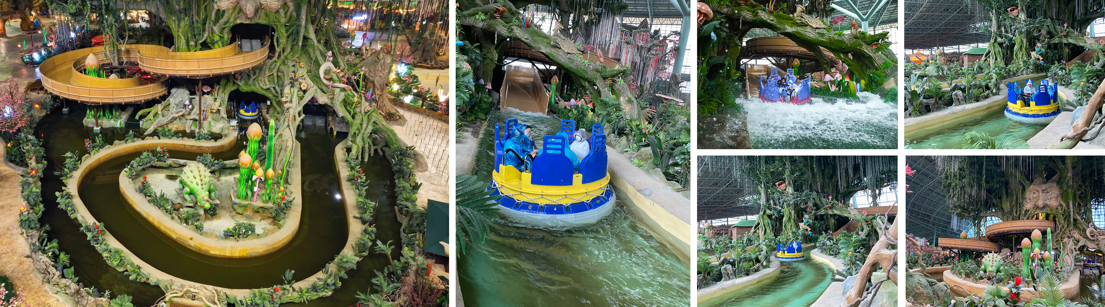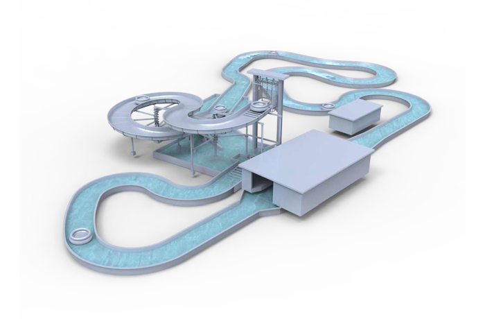 垂直提升漂流采用垂直傳動(dòng)系統(tǒng)提升方式提升,減少設(shè)備占地面積。筏體經(jīng)提升系統(tǒng)垂直提升至水道的高位,乘客乘船俯沖滑行,伴隨著螺旋、高速等體驗(yàn),充分體會(huì)漂流的親水樂趣。設(shè)備占地面積小,運(yùn)營(yíng)成本低。