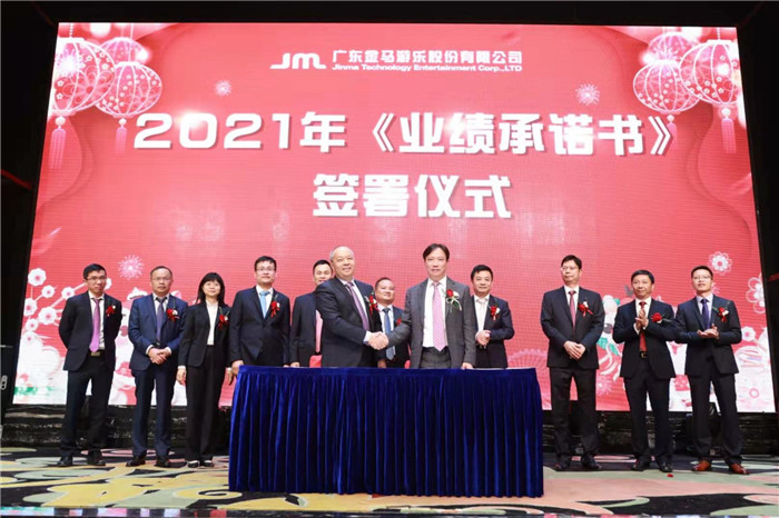 在全場(chǎng)人員的共同見(jiàn)證下,公司各部門及子公司負(fù)責(zé)人共同上臺(tái)簽署2021年《業(yè)績(jī)承諾書》,隨后在全場(chǎng)熱烈的掌聲中全體高管手執(zhí)輝煌線,共同為“金馬游樂(lè)”更名揭牌。更名后,公司將以嶄新面貌繼續(xù)為全球客戶提供優(yōu)質(zhì)的游樂(lè)產(chǎn)品和服務(wù),在新征程中再創(chuàng)金馬輝煌偉業(yè)。