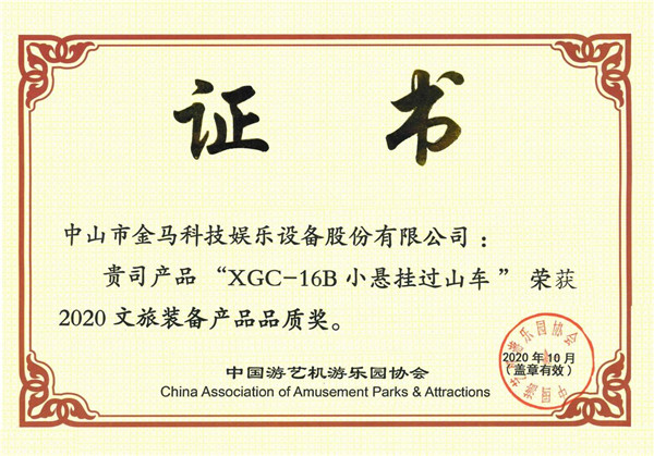 同時,“JL-20A激流勇進”和“XGC-16B小懸掛過山車”分獲“文旅裝備產品創(chuàng)新獎”和“文旅裝備產品品質獎”。