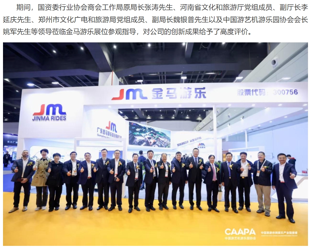 10月24-26日,由中國游藝機游樂園協(xié)會(CAAPA)主辦的2024中國(鄭州)旅游休閑娛樂產(chǎn)業(yè)博覽會在鄭州國際會展中心舉行,本次博覽會及相關(guān)活動,旨在進一步推動文旅休閑娛樂行業(yè)的發(fā)展與繁榮,促進文化旅游與多業(yè)態(tài)深度融合,助力旅游業(yè)現(xiàn)代化建設和高質(zhì)量發(fā)展。公司董事長鄧志毅先生與眾多行業(yè)領(lǐng)導、嘉賓共同出席了開幕儀式。