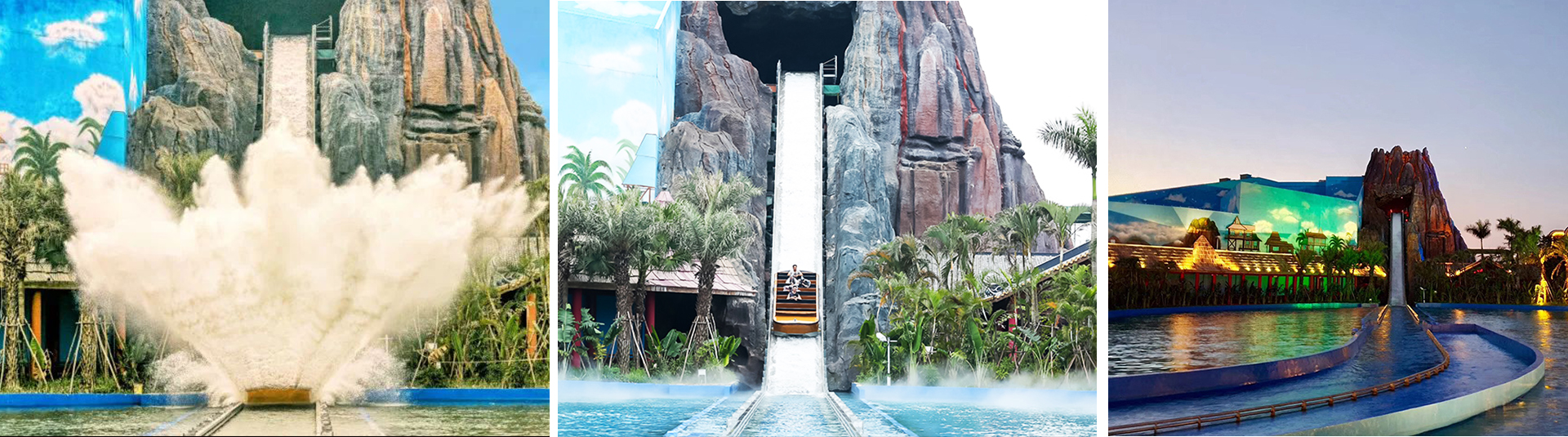 垂直提升激流勇進(jìn)設(shè)備提升高度20米,具備垂直提升、跌落、背沖的特點(diǎn)。采用垂直傳動(dòng)系統(tǒng)提升方式提升,減少設(shè)備占地面積。船體到達(dá)旋轉(zhuǎn)臺(tái)時(shí)進(jìn)行方向調(diào)整,乘客可在游玩過程中分別體驗(yàn)前向俯沖起伏、背向俯沖起伏兩種運(yùn)動(dòng)形式,同時(shí)可融入影視特效主題內(nèi)容,體驗(yàn)元素多樣,驚險(xiǎn)刺激。
