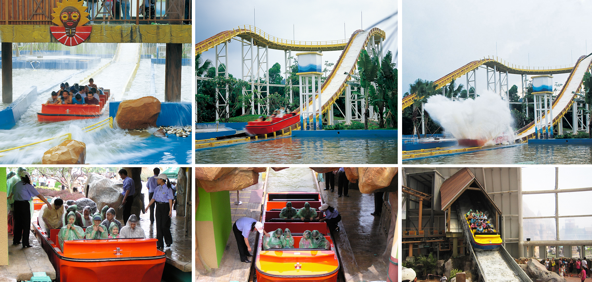 激流勇進(jìn)設(shè)備提升高度16米,軌道蜿蜒而行,抵達(dá)高坡制動段后經(jīng)過減速到達(dá)下沖段,進(jìn)行快速下沖。乘客在游玩過程中,體會高速沖浪、失重、離心、浪激等多重刺激,其樂無窮。