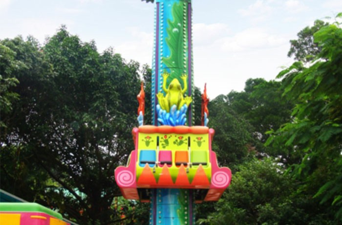 座艙沿著豎直的立柱軌道上升下降,連貫的跳躍運(yùn)動(dòng),使乘客在超重與失重的過(guò)程中體驗(yàn)到驚險(xiǎn)與刺激;
