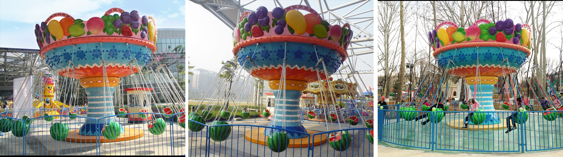 以水果為主題,游客坐在西瓜造型的座艙內(nèi),隨風(fēng)飛舞,宛如在水果世界中翱翔,是主題公園或現(xiàn)代游樂場首選項目之一。