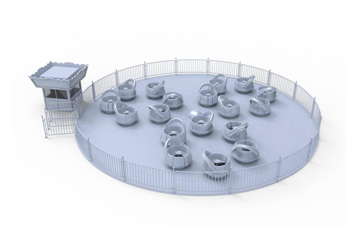 轉(zhuǎn)轉(zhuǎn)杯設(shè)備是由軌道、大盤、小盤及杯體組成,動物主題外觀,乘客坐在杯中體驗(yàn)多重復(fù)合轉(zhuǎn)動所帶來的旋轉(zhuǎn)樂趣。
