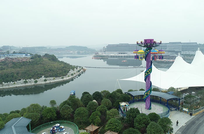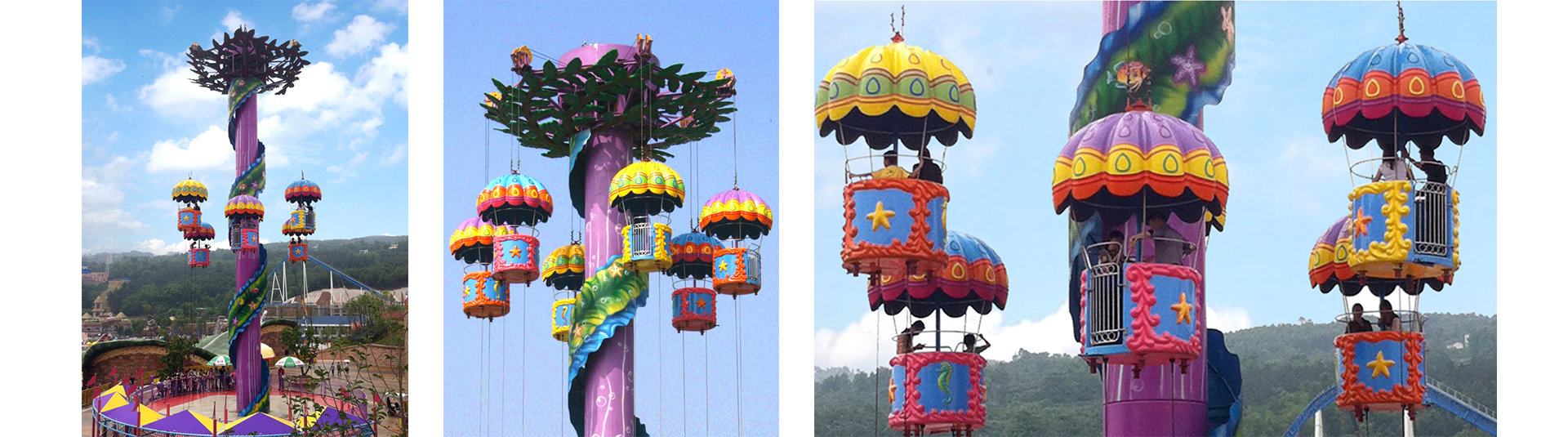 TST-18A跳傘塔是我公司自行設(shè)計、制造的大中型游樂設(shè)備,是一項使乘客座艙(傘體吊籃)沿豎直方向做上下往復(fù)運動的設(shè)備。做上升運動時,讓游客仿佛隨座艙飄上云霄;做下降運動時,猶如跳傘一樣緩緩下墜,令乘客回味無窮、流連忘返;設(shè)備外觀造型新穎美觀,操作簡單可靠,是一項極佳的游樂設(shè)施。