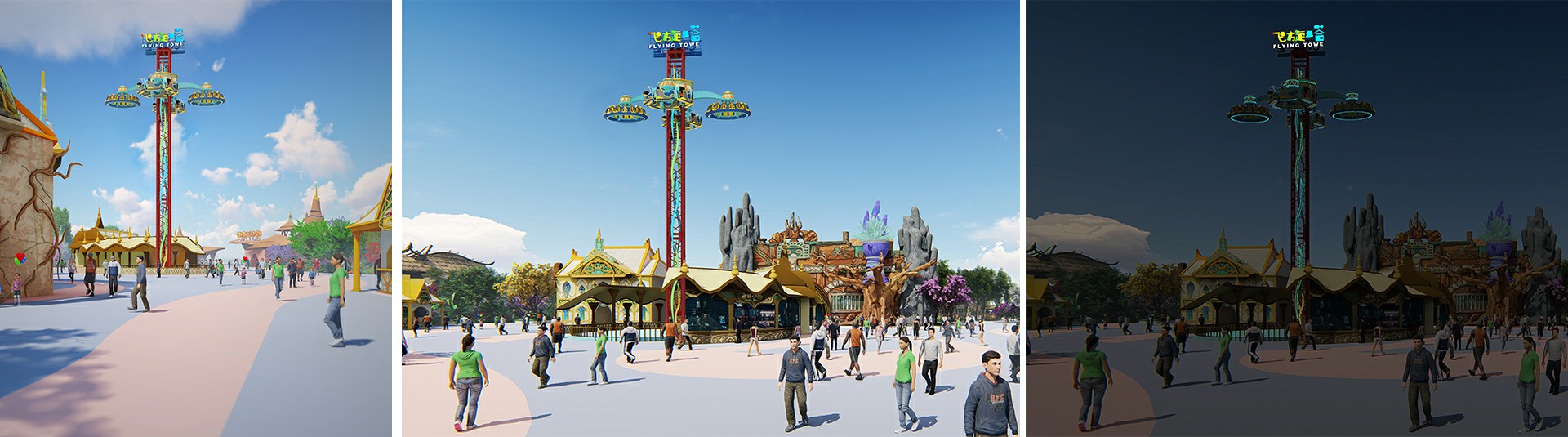 飛旋塔采用雙座艙形式,即集成旋轉(zhuǎn)座艙與擺動座艙,實現(xiàn)滑行擺動角度多樣化,為游客提供新奇、刺激的游玩體驗。此款飛旋塔最高限制乘坐人數(shù)較同類飛行塔產(chǎn)品更多,且其采用的雙油缸安全模式具備安全冗余,由此達到運營效率與安全系數(shù)的雙項提升。