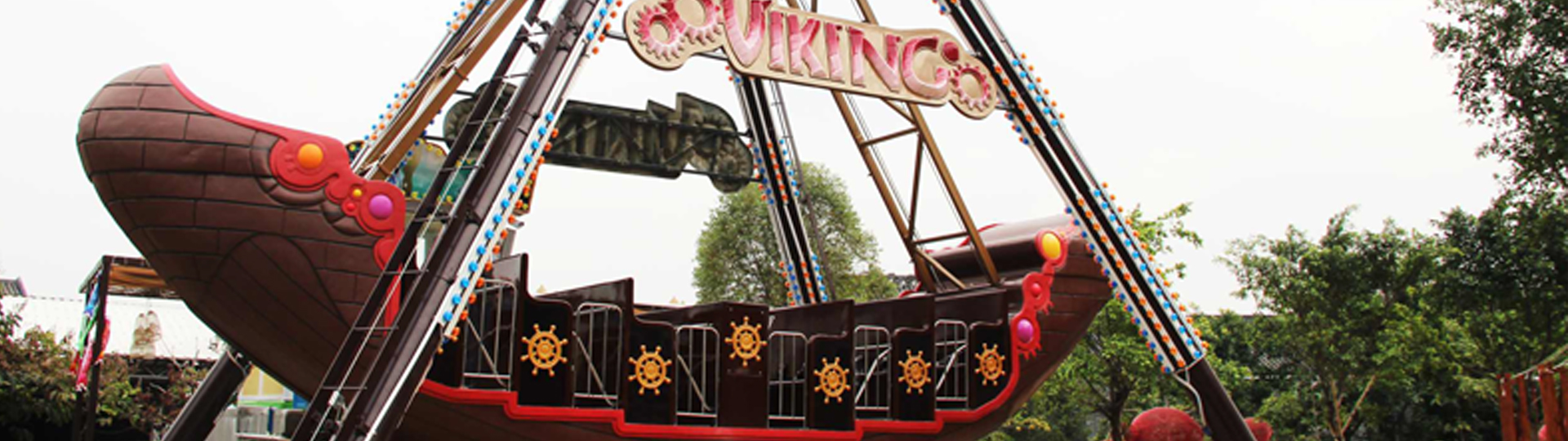 海盜船繞水平軸來(lái)回?cái)[動(dòng),模擬海盜乘風(fēng)出海的場(chǎng)景,交替而至的失重和超重感讓乘客盡情體驗(yàn)搖擺的樂(lè)趣。6排座椅,承載24人。