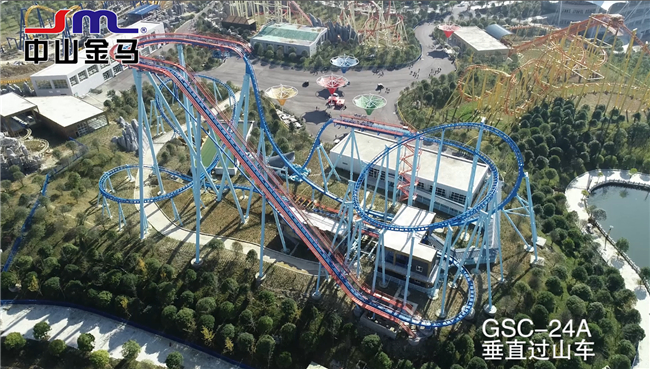 【GSC-24A 垂直過山車】是中山金馬公司全新推出的大型游樂設(shè)備,車體提升到軌道最高點后,高空懸停3秒,垂直跌落后列車沿預(yù)設(shè)軌道自由滑行。沿途滑行軌道花樣設(shè)有側(cè)傾,盤旋,直線俯沖,陡峭上升,二次垂直跌落,巖洞穿梭,水上沖浪等多種結(jié)合,憑借該新型設(shè)備的創(chuàng)新設(shè)計和全新體驗,中山金馬公司獲得了游樂界·金冠獎“中國杰出過山車設(shè)備供應(yīng)商”榮譽獎項。
